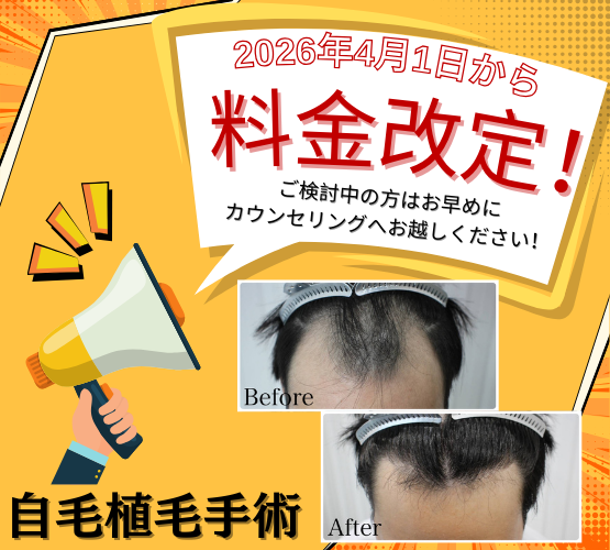 自毛植毛手術の料金を改定させて