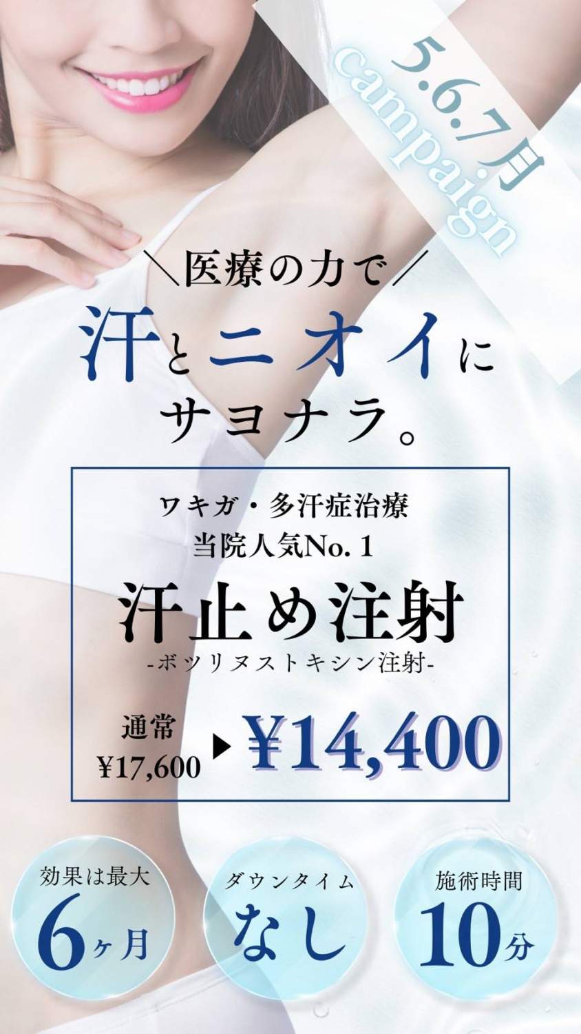 ★キャンペーンのお知らせ②★ わき汗が気なるこの季節おすすです。 5月6月7月対象